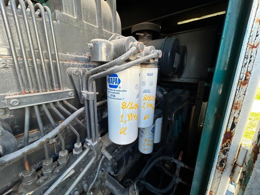 Unit is enclosed in sound-attenuated housing. Cosmetic wear and surface corrosion consistent with age and use.