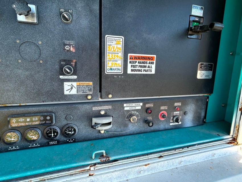 Denyo DCA-600SPK engine-driven, soundproof diesel generator rated at 500 kW (600 kVA), 3-phase (4-wire), continuous duty. Powered by a Komatsu SA6D170A diesel engine.