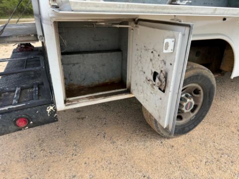 This 2002 GMC 2500HD 4x4 service truck runs and drives well and features the reliable GM 6.0L Vortec engine. The service body is in good condition, and all doors and drawers open and close properly. Equipped with a front-mounted winch for added utility.