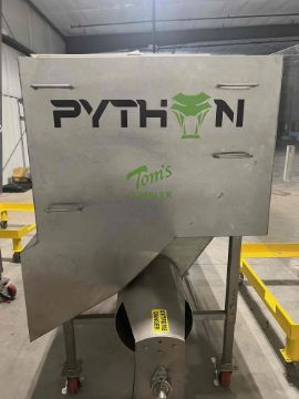 NEW PRICE - 40,000-45,000. Tom Tumbler Python 400 hemp machine. Estimated hours are 55-75 which means its barely been used. The Mighty Python Industrial Flower Trimmer is a professional-grade flower-trimming machine designed to handle large production levels. As a commercial flower trimmer, it can efficiently trim up to 400 lbs per hour. Does come with conveyor belts as well.