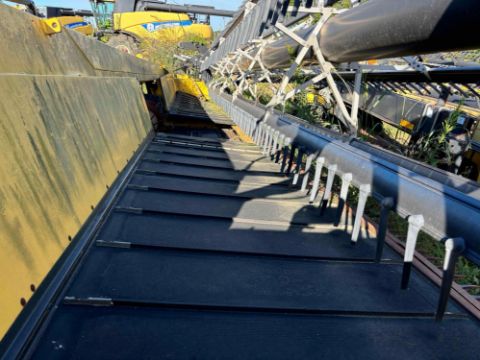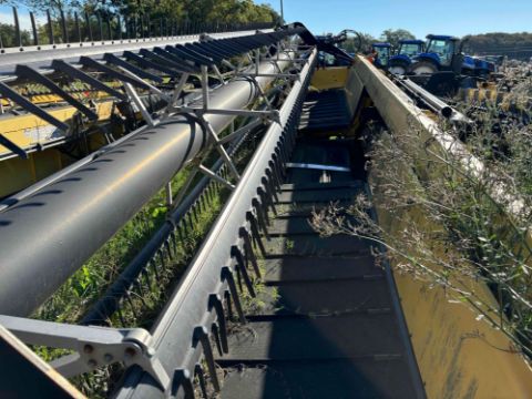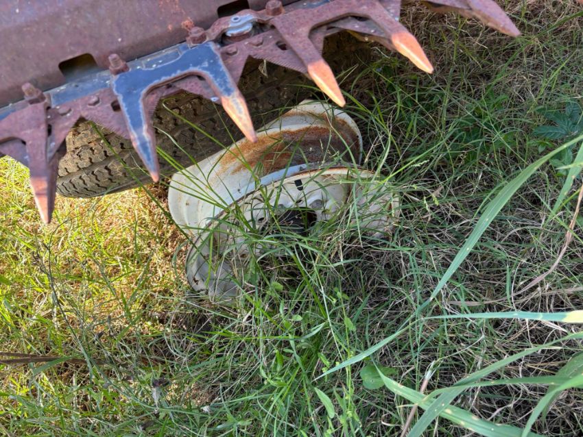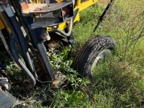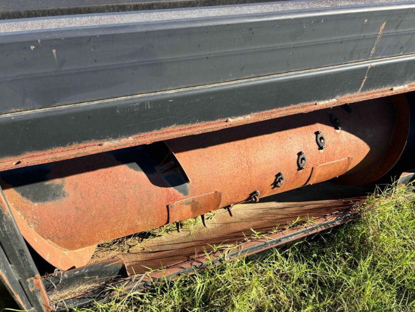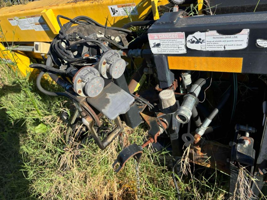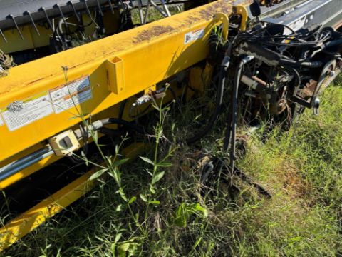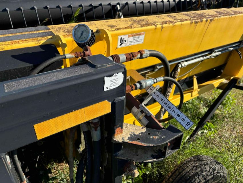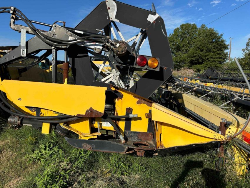 Header does come with transport system but will need a new tire on reel side. tire size ia an ST225/75R15. Unit is also missing rear tire for header on left side, missing wobble box, there may also be some other missing parts as well but the reel and belts do not look like they are bad condition. just needs a little TLC and it would make a great addition to your operation. The tire that is good is in good shape as well