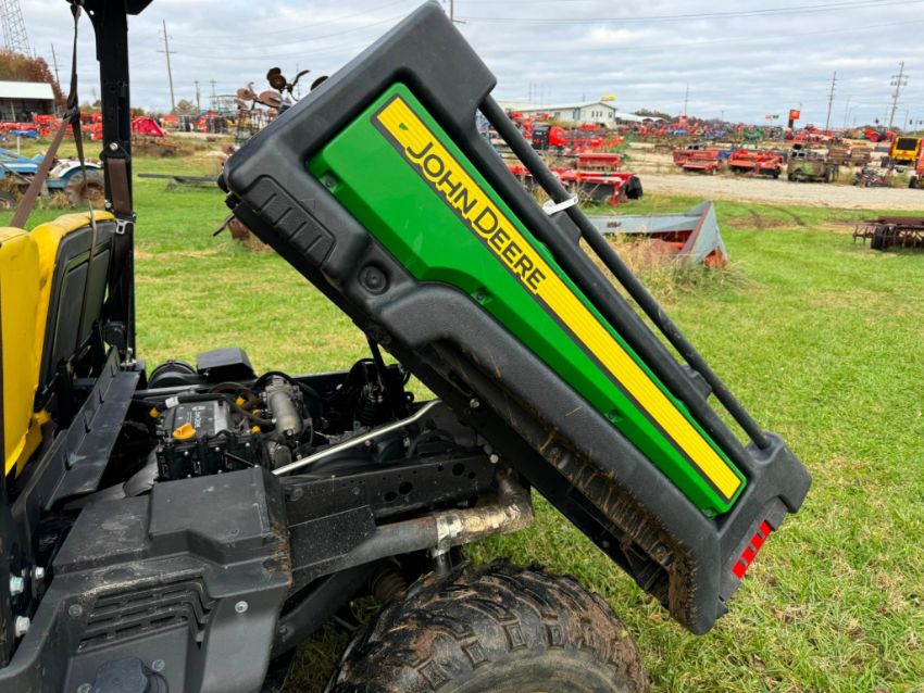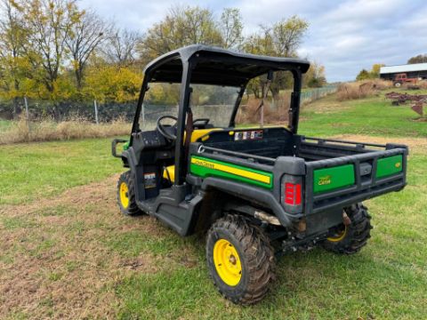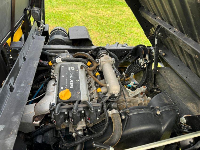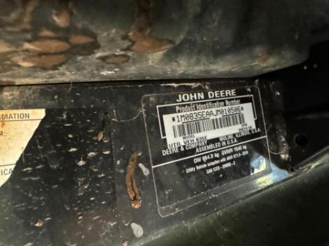 2018 John Deere XUV 835E, 500 Hours, Manual steering, Roof W/S, Good working condition. S/N:1M0835EAAJM010506, 4-cyl gas EFI engine providing 54HP. CVT with clutch enclosure transmission. Also provides a 3 person cockpit with dash display