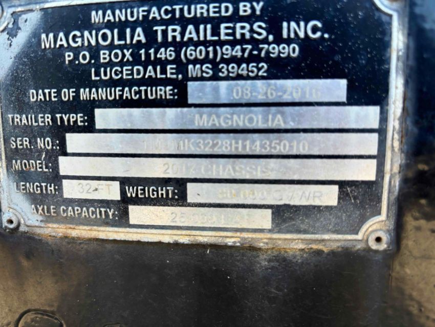 2017 Magnolia Adams Tender Trailer. 32 feet long, 25000 lb axles capacity, two axles, 255/70/22.5 tires all good all round except back right tire needs replacing, 2016 Adams tender bed, 154 hours run time, hoses and air bags good, front and rear vibrating shakers, gates open and close good