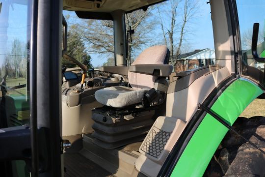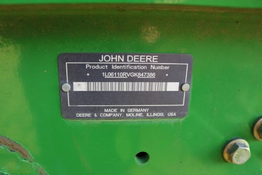 This 2016 John Deere 6110R tractor offers exceptional performance with 110HP and is equipped with 2 sets of rear remotes featuring continuous flow for versatile attachments. The 24/24 AutoQuad Plus transmission and Ecoshift technology provide smooth and efficient shifting, allowing for easy operation. Featuring an air ride seat for operator comfort, telescopic mirrors for better visibility, and 2-position steel wheels for durability, this machine is designed to handle a variety of tasks. The 114L/min hydraulic pump ensures reliable power for heavy-duty implements. With 2,037 hours, it is in good condition and ready for work.