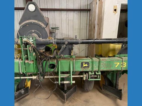 John Deere 7300 MaxEmerge 2 planter set up as a 4-row unit with 38-inch row spacing, but the seller states it can be adjusted to different row widths as needed. This planter is designed for precision seeding and is well-suited for various farming operations.