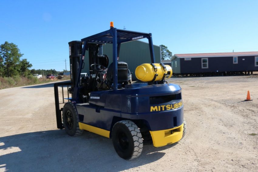 This Mitsubishi FG35 forklift has an 8,000lb lift capacity, ideal for heavy-duty material handling. Running on LP gas, it features an adjustable seat for operator comfort and durable front and rear tires for stability.
