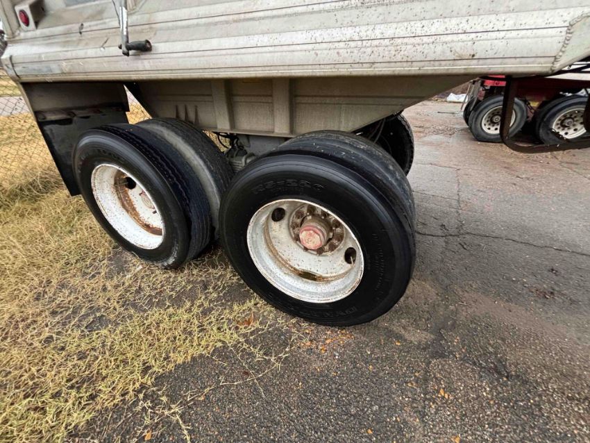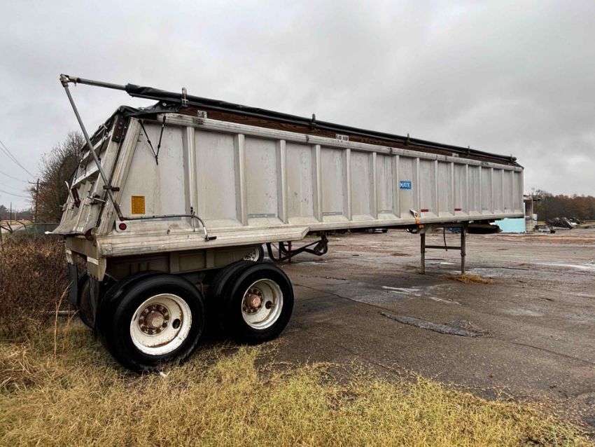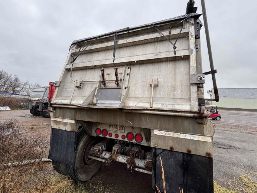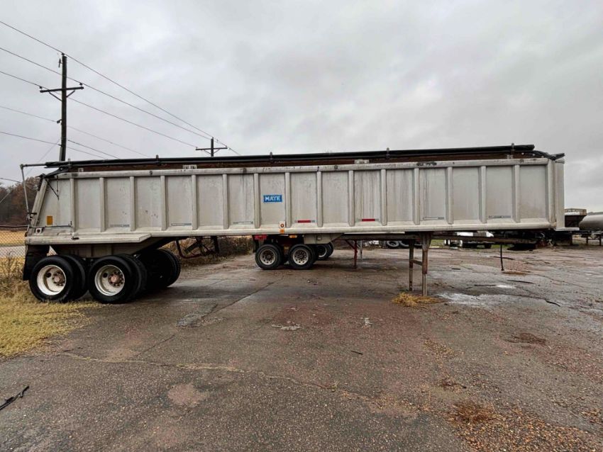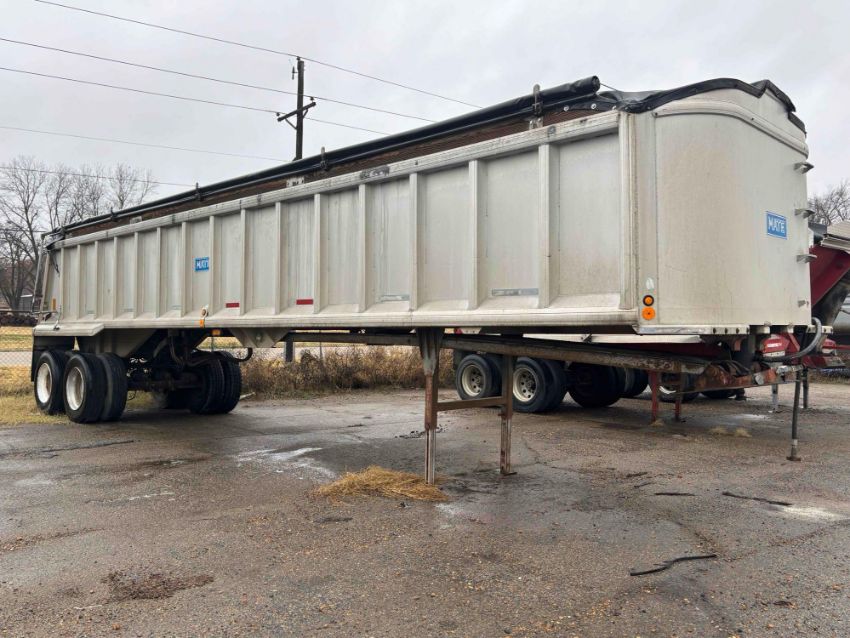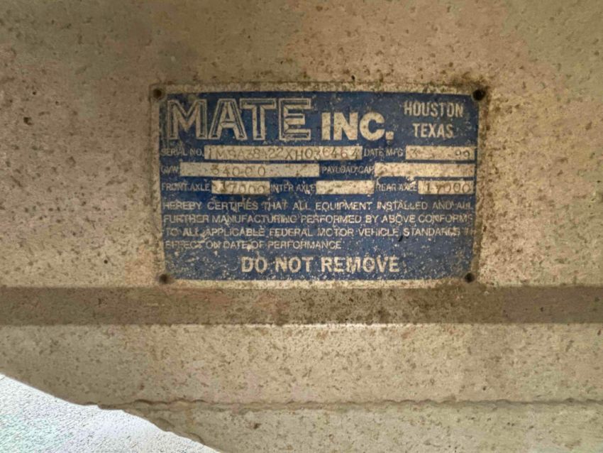 Mate Dump Trailer. Vin Tag shows Manufacture date of 1999. GVW of 34,000 pounds, front and rear axle of 17,000 lbs, roll over tarp, small back gate in dump bed