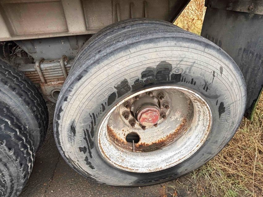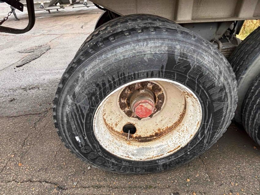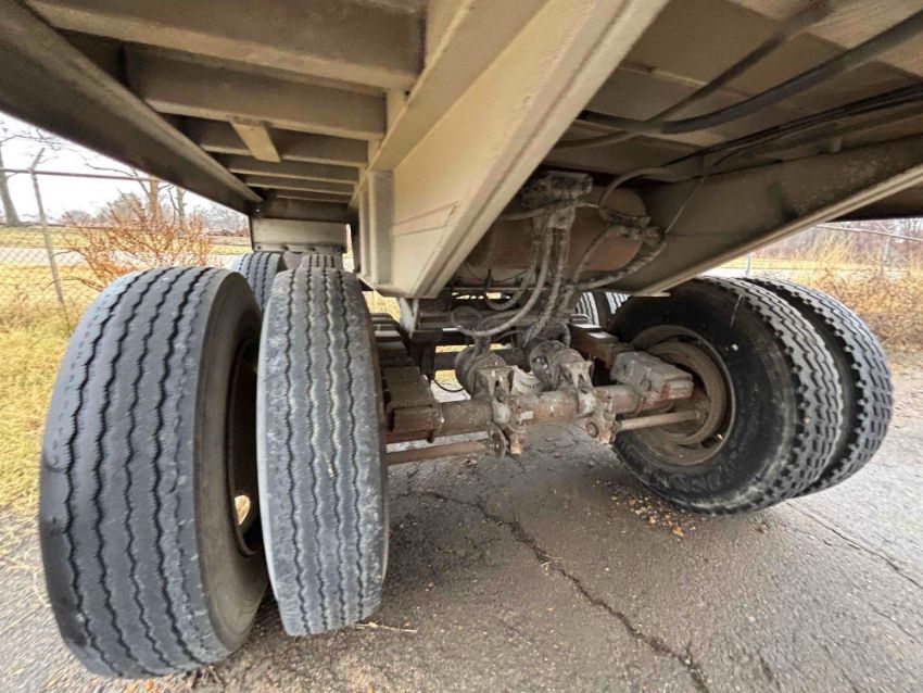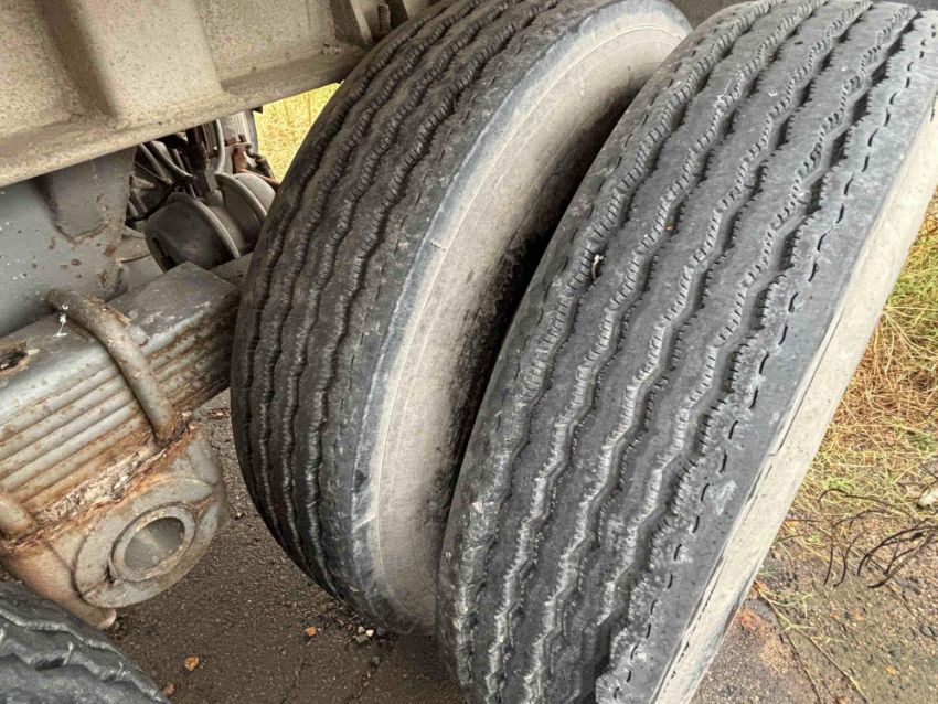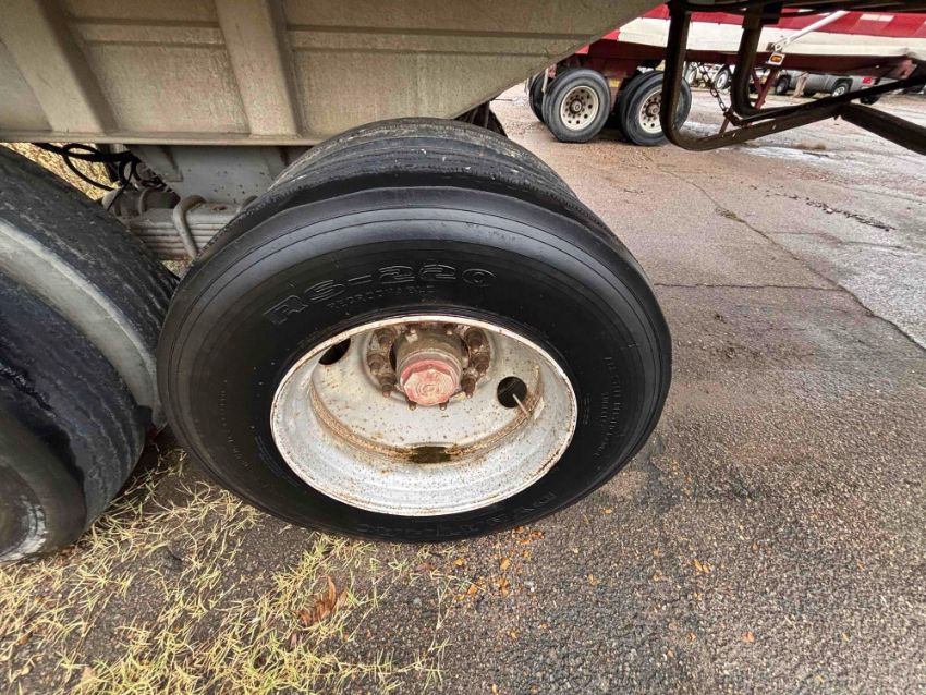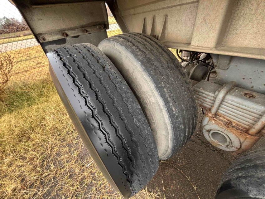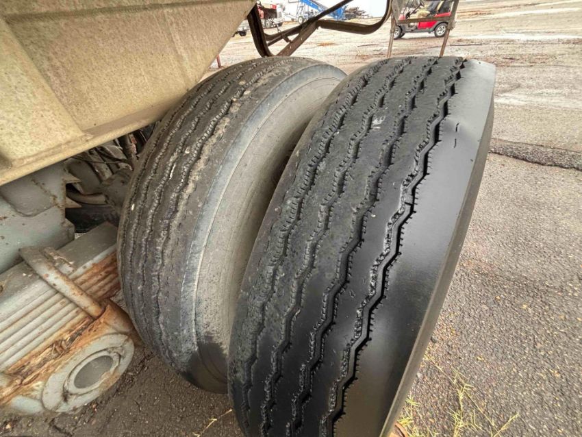 Mate Dump Trailer. Vin Tag shows Manufacture date of 1999. GVW of 34,000 pounds, front and rear axle of 17,000 lbs, roll over tarp, small back gate in dump bed