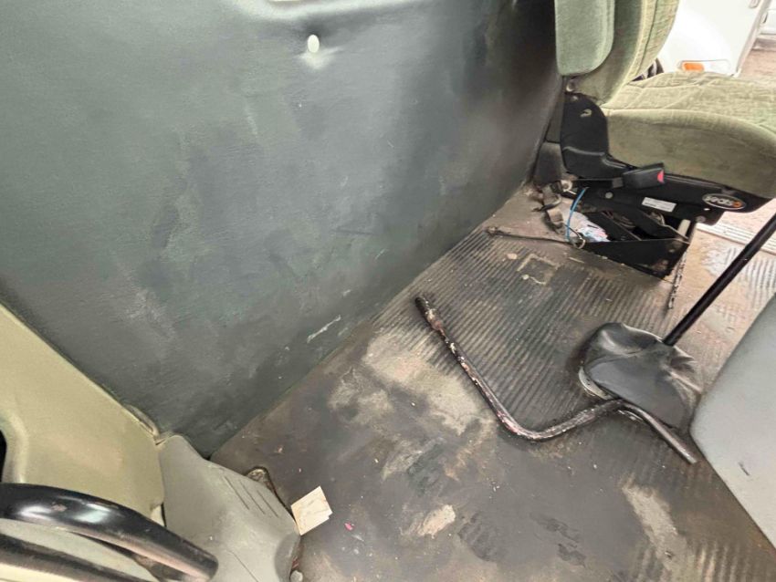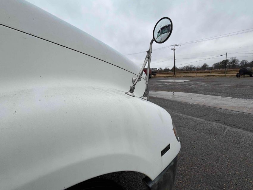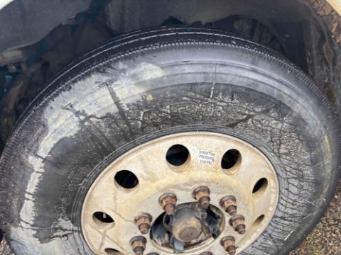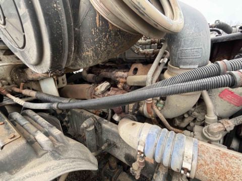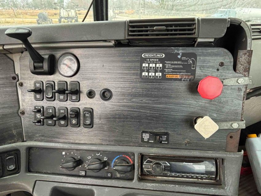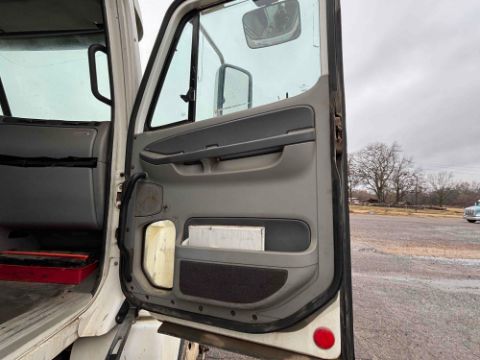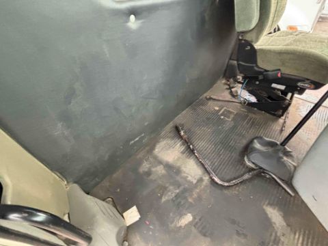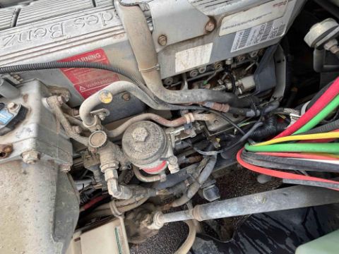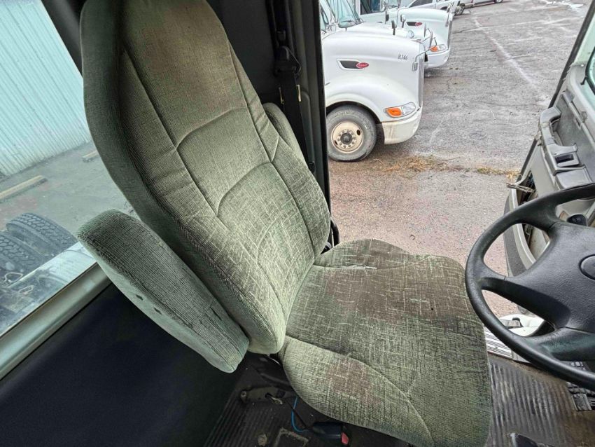 This Freightliner is powered by a strong Mercedes Benz Engine. Only equipped with with a drivers seat with armrests. Drivers panel door on inside is missing panels and armrest is cracked. Outside mirrors are in good shape, hoses are also in good shape. Tires are in decent shape as well, Fenders over front rear wheels are not cracked and are in good shape. This is definitely a good strong truck.