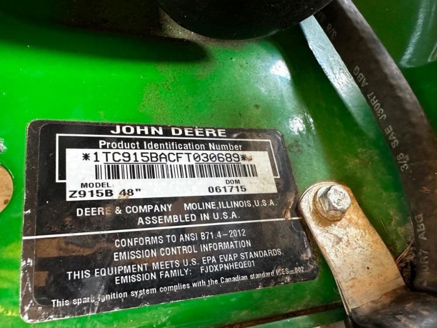 With 1,207 hours on the clock, this mower has been well-maintained and is ready to take on more work. The Z915Bs zero-turn radius allows for precise control and maneuverability, making it ideal for residential and commercial applications alike.