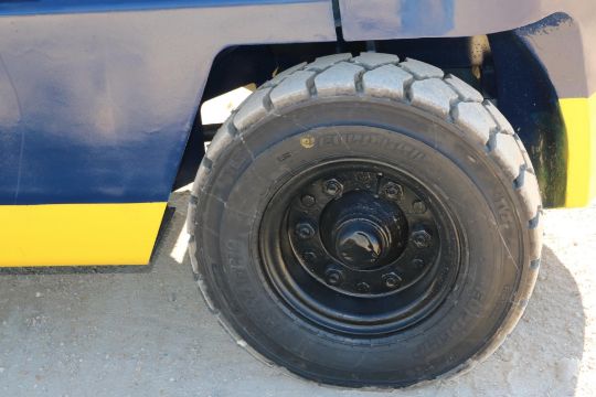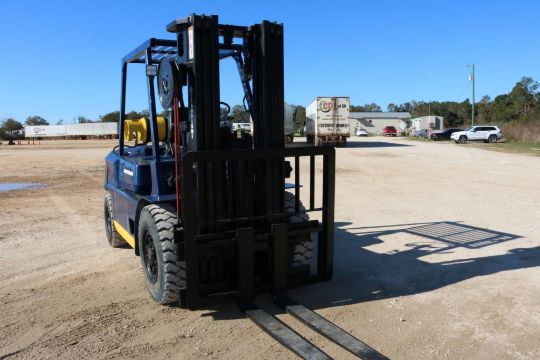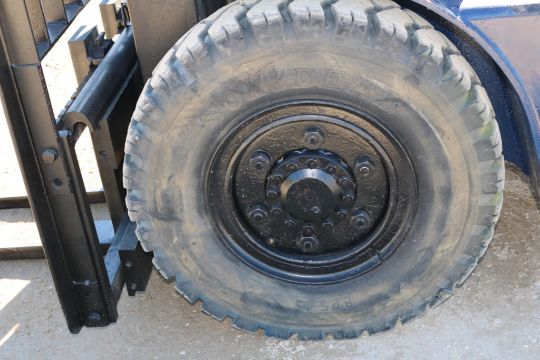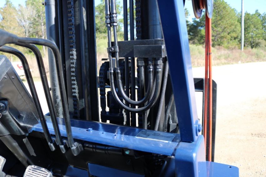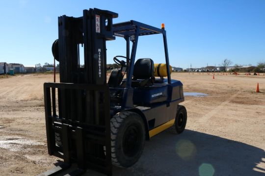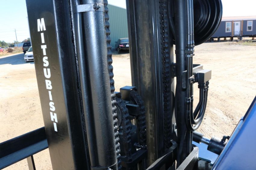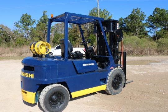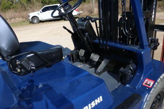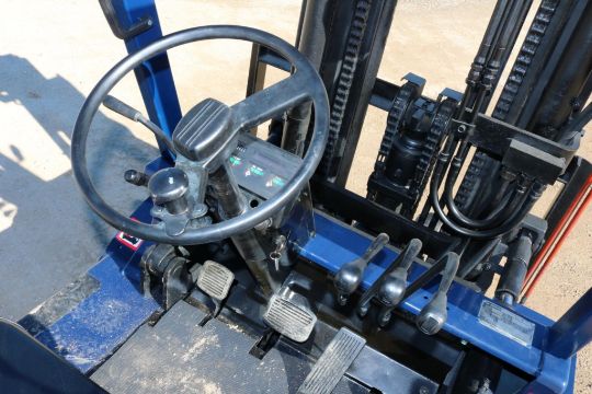 This Mitsubishi FG35 forklift has an 8,000lb lift capacity, ideal for heavy-duty material handling. Running on LP gas, it features an adjustable seat for operator comfort and durable front and rear tires for stability.