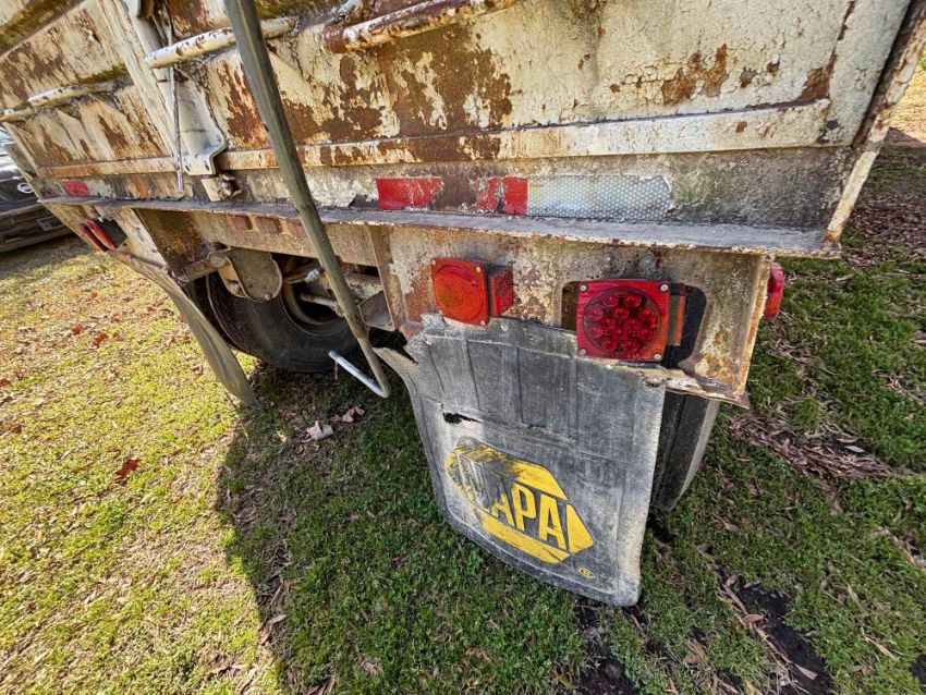 Given its age, the trailer exhibits some rust and corrosion, particularly on the right side in the middle where the trailer meets the frame. These signs of wear are typical for a trailer of this vintage and do not impede its operational capabilities. Prospective buyers are encouraged to inspect the trailer to assess its condition fully.
