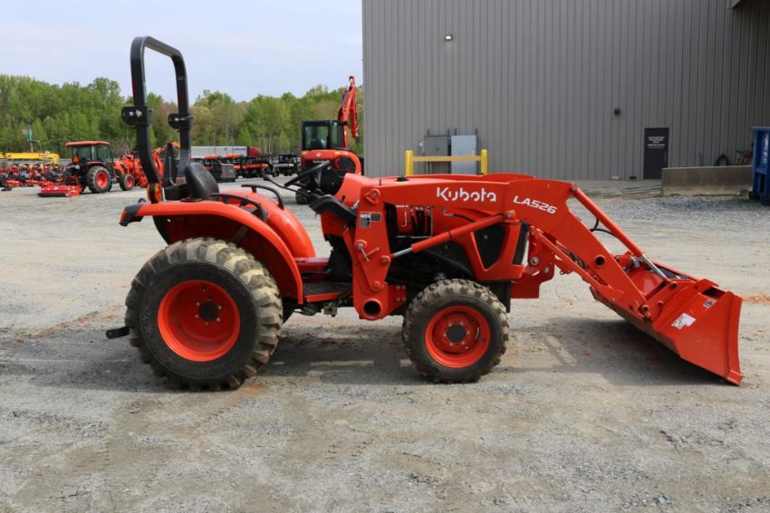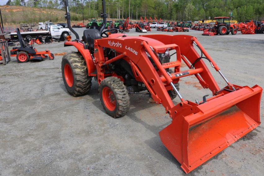 2022 Kubota L3302 Compact Utility Tractor 4WD with R4 industrial tires, front loader, and 3-point hitch. Powered by Kubotas trusted diesel engine and equipped with a 3-range hydrostatic transmission, this unit is built for versatility and ease of operation. It's in good condition, showing normal wear and ready to tackle everything from landscaping to light farm work. A dependable workhorse with the features you need to get the job done.
