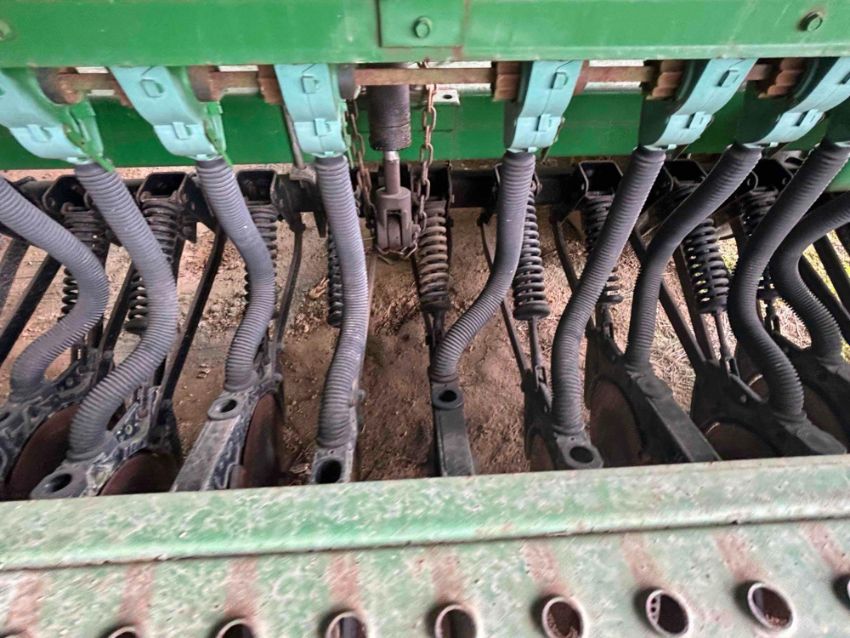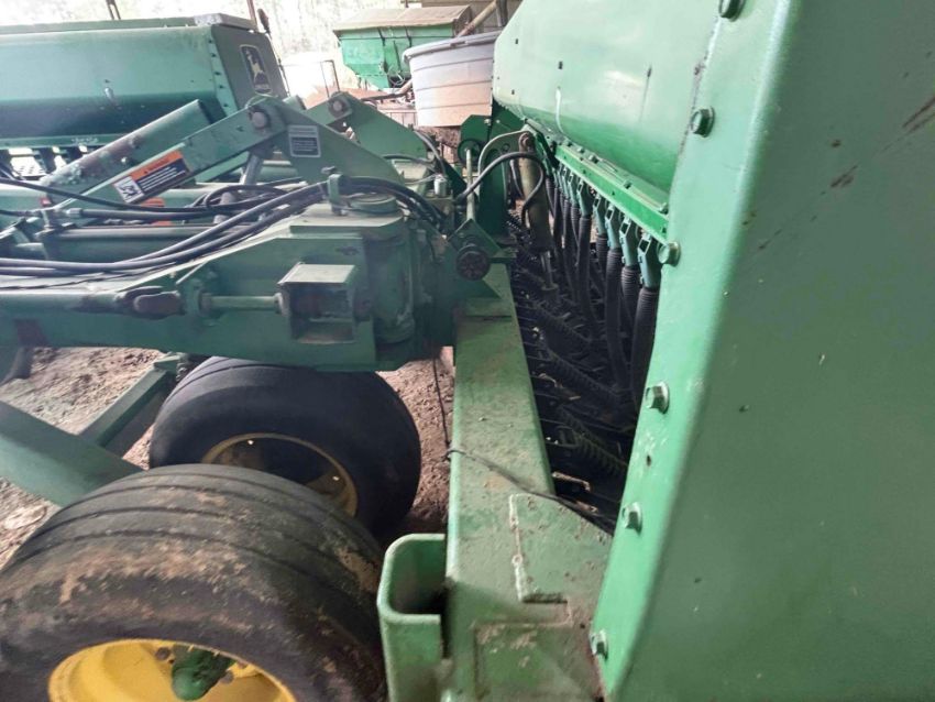 John Deere Grain drill. 30 ft drill set up on 7 1/2 inches spacing. Unit is ready to go to work. All tubes, tires and hoppers are in good shape. Three 10 ft seed boxes that fold up nicely behind the tractor going down the road and also being able to get into fields that have gates or culverts.