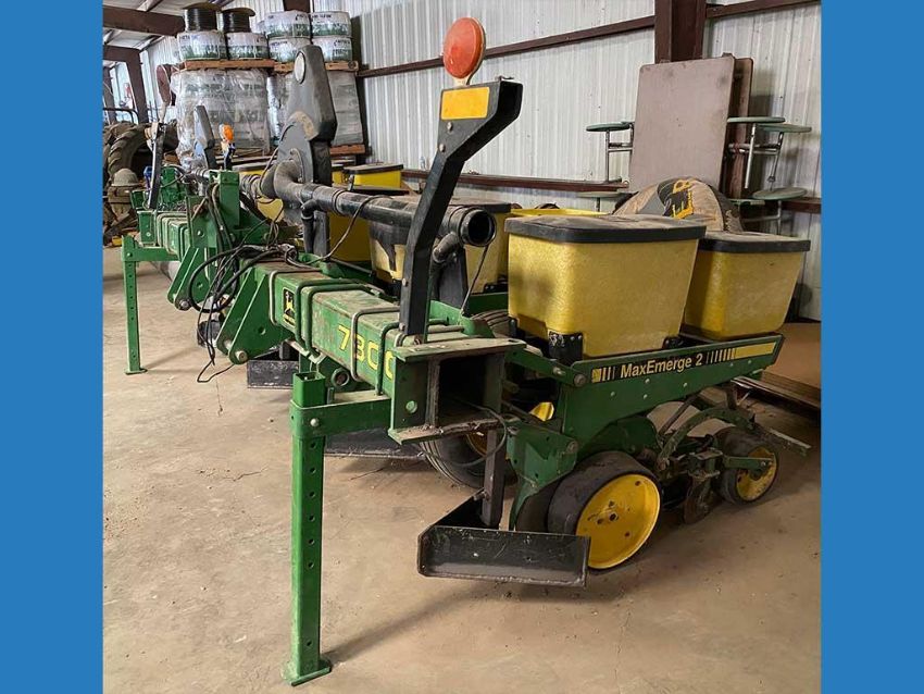 John Deere 7300 MaxEmerge 2 planter set up as a 4-row unit with 38-inch row spacing, but the seller states it can be adjusted to different row widths as needed. This planter is designed for precision seeding and is well-suited for various farming operations.