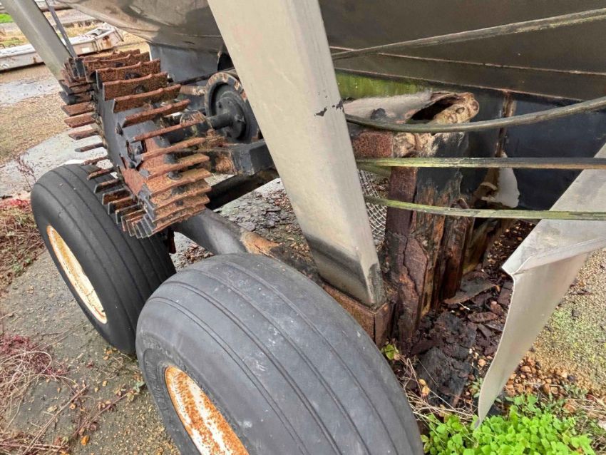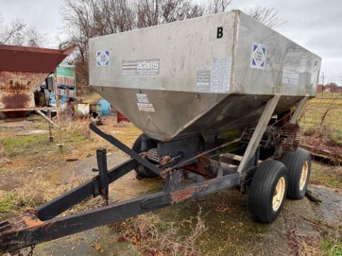 Adams 5 ton fertilizer buggy. decent tires, will need work on fertilizer chain/grated belt, and regular belts, frame is corroded due to fertilizer