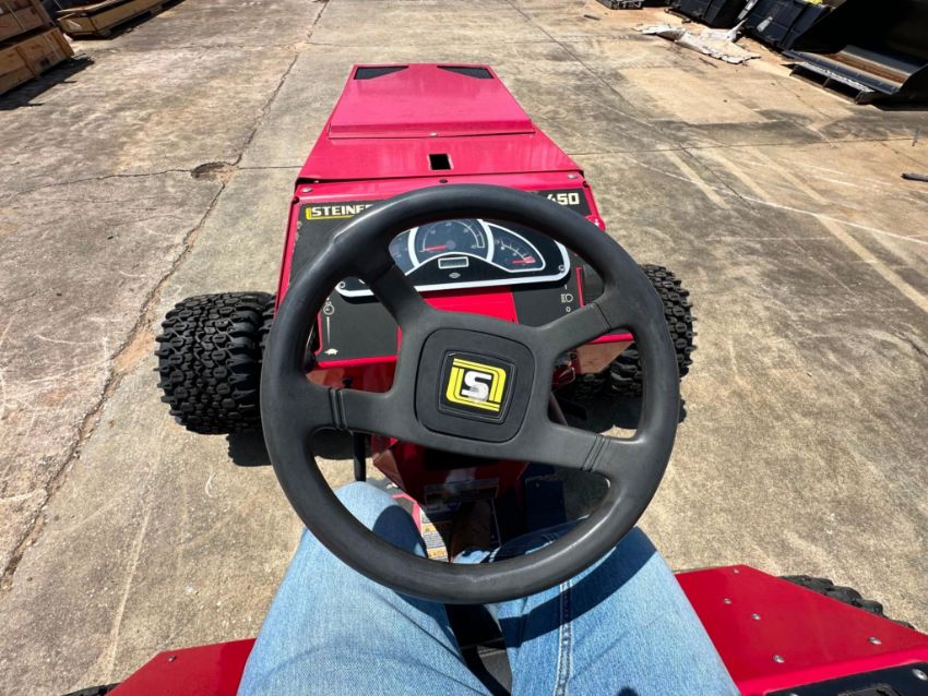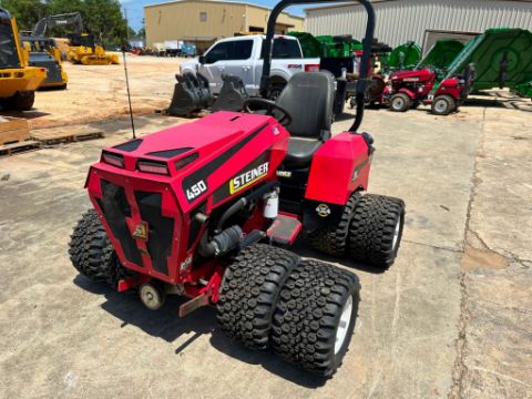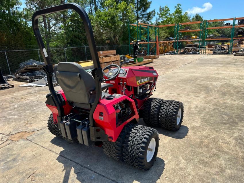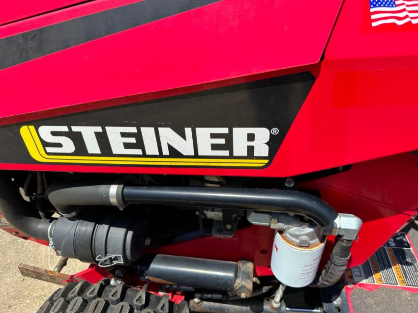 Selling a Steiner 450 articulating 4WD tractor, model 75-75032, equipped with auxiliary rear hydraulics and rear wheel weights for added stability and implement capability. Built for serious commercial or municipal use, this Steiner features true 4-wheel drive, tight turning radius, and the flexibility to power a range of front and rear-mounted attachments.