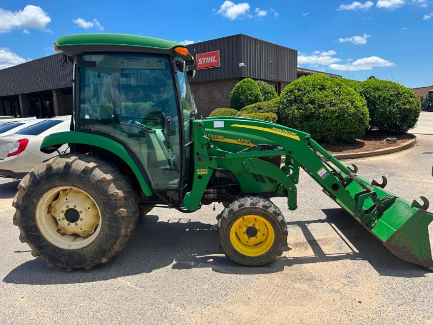 Solid mid-size tractor with plenty of muscle! This John Deere 4320 comes equipped with 4-wheel drive, a front-end loader, and a comfortable cab setup that includes a functioning radio and air conditioning that blows cool (not cold). Powered by a reliable 48HP diesel engine, its built to handle loader work, mowing, and general farm or land maintenance with ease.