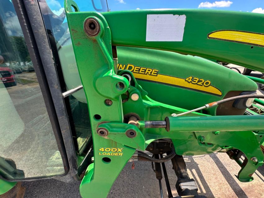 Solid mid-size tractor with plenty of muscle! This John Deere 4320 comes equipped with 4-wheel drive, a front-end loader, and a comfortable cab setup that includes a functioning radio and air conditioning that blows cool (not cold). Powered by a reliable 48HP diesel engine, its built to handle loader work, mowing, and general farm or land maintenance with ease.