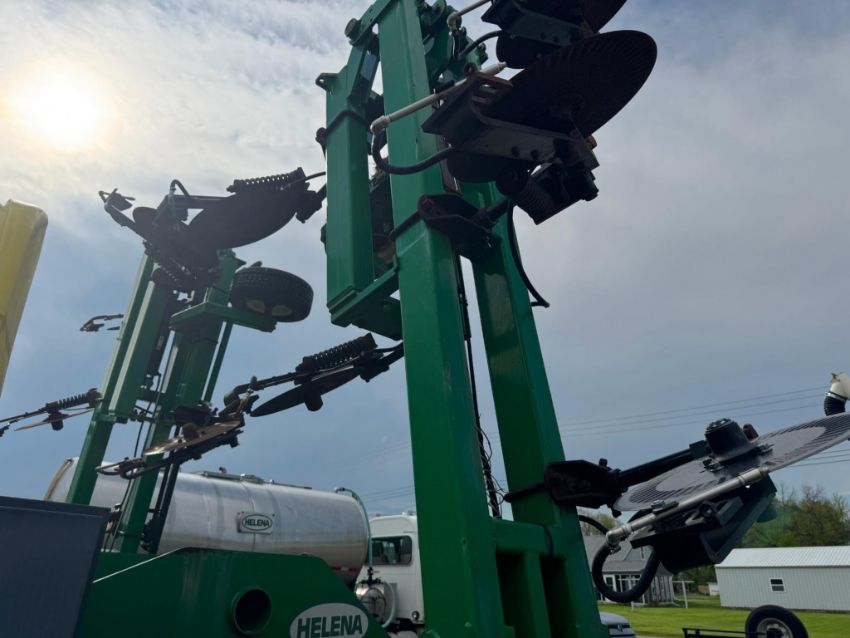 2014 Schaben Industries Sidedresser 35-ft toolbar, 12-row configuration. 1,500-gallon poly tank. Ground drive pump system. Coulter injection units with adjustable row spacing. Heavy-duty 7inx7in toolbar frame. Tandem walking axle, 380/90R46 tires. Category 3 hitch. Hydraulic folding wings. Clean, ready-to-use unit for liquid side-dress application.