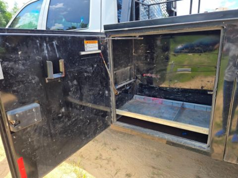 2018 Dodge Ram 3500 pickup with a powerful HEMI gas engine, 4x4 drivetrain, and 139,000 miles. Equipped with a 6-bin door utility flatbed, gooseneck ball hitch, and power windows, locks, and mirrors. Tires have solid tread, and the truck is clean inside and out. A well-maintained southern truck-ideal for ranch work, hotshot hauling, and utility services. Ready to go to work.