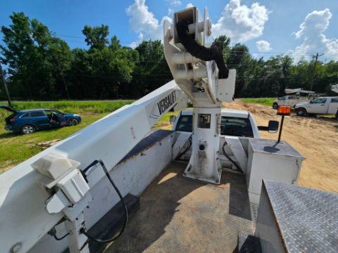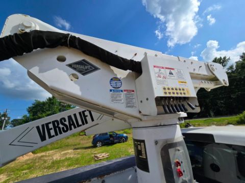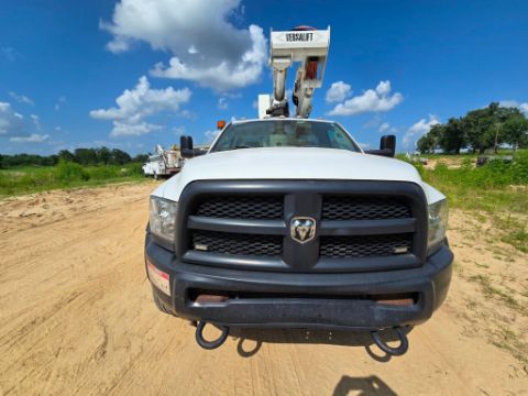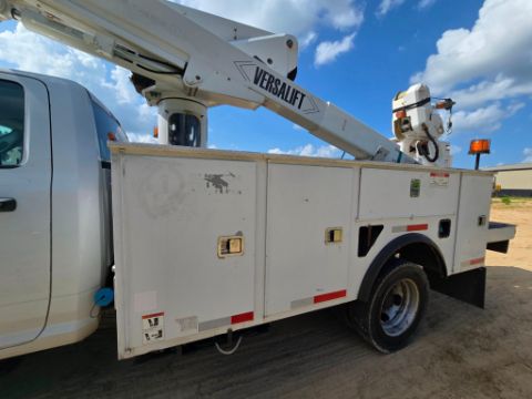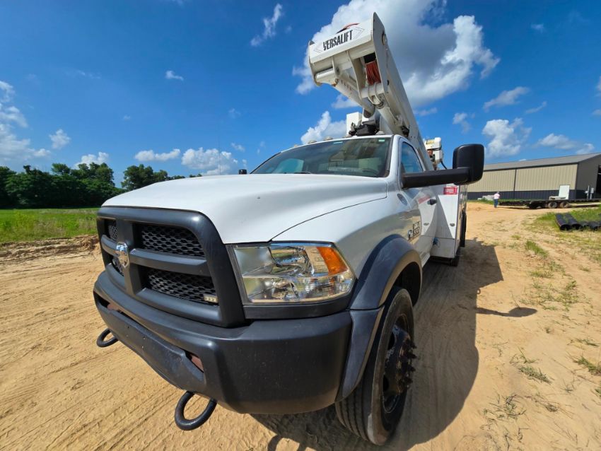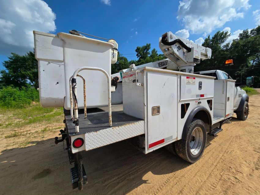 2018 Dodge Ram 5500 bucket truck 4x4, powered by a Cummins diesel engine with automatic transmission. Features a Versalift VST40 boom with 45-foot working height, rotating bucket, and jib boom winch - ideal for utility, tree service, and aerial maintenance work. 151,959 miles. Rugged, reliable, and ready for the job site.