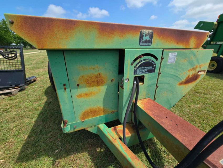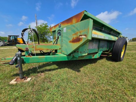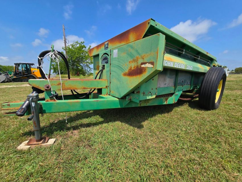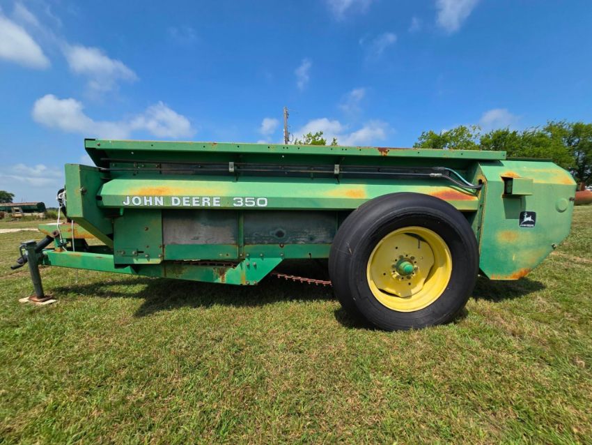 Boost your farm's efficiency with this John Deere 350 PTO-driven manure spreader. Designed for mid-size operations, this rugged unit features a 350-bushel capacity, hydraulic end gate, and a heavy-duty steel apron chain over a solid wood floor for consistent, controlled discharge. The 540 RPM PTO powers both the beater and floor chain, delivering even spread patterns across varied terrain. Whether you're spreading solid manure or compost, the JD 350 is built to handle tough jobs season after season.