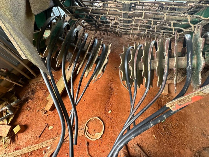 KMC 436 peanut inverter, belts appear in good shape, slats are straight, flat tire on left side, buyers responsible to load