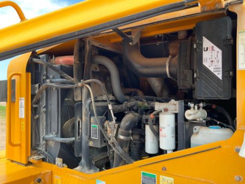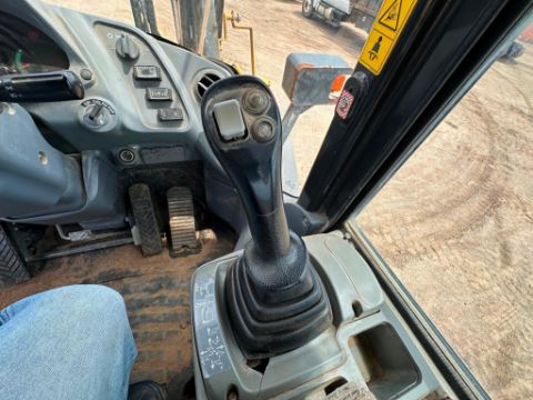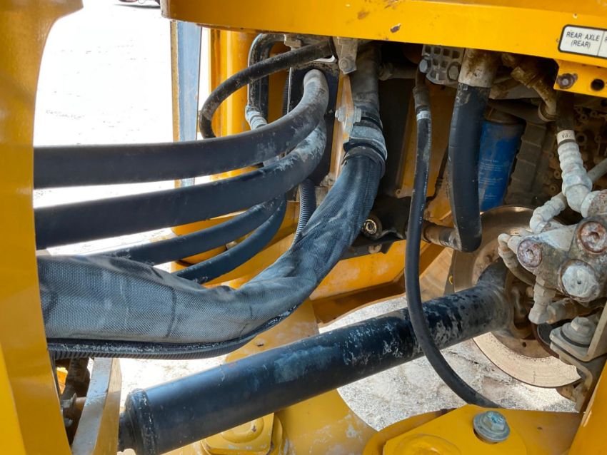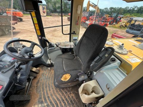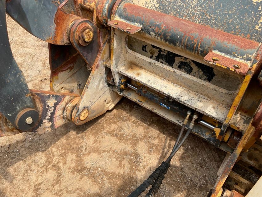 The exterior is in fair condition with no major dents or pitting rust, though the tail lights are broken. All grease fittings were observed to be operational and greased. Inside, the cab shows wear consistent with use - theres a tear in the seat and damage to the right armrest, and some decals are fading. However, all functions appeared to operate correctly at the time of listing.
