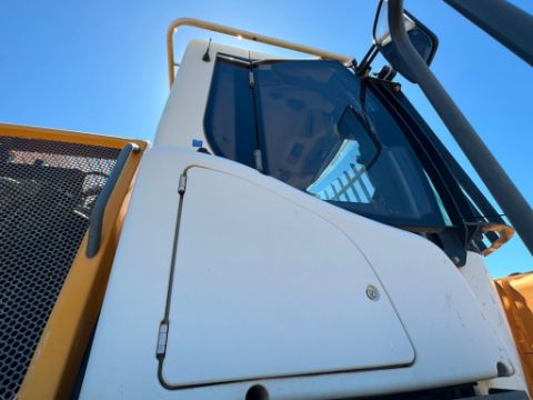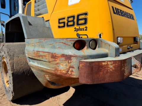 2011 Liebherr L586 wheel loader with 6,098 hours, powered by a 340 HP Liebherr Tier 3 diesel engine and hydrostatic drive. Equipped with Z-bar linkage, Liebherr quick coupler, auxiliary hydraulics, and large solid rubber tires for heavy-duty applications. Enclosed ROPS cab with heat and A/C. Tipping load approx. 46,000 lbs, bucket capacity 7.58.5 yd. Has leaking front left wheel hub.