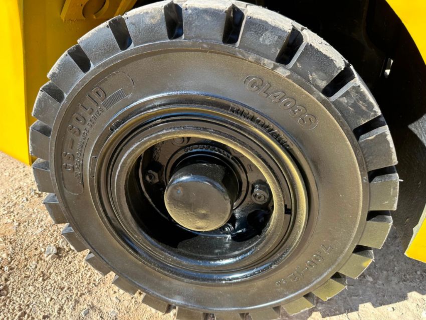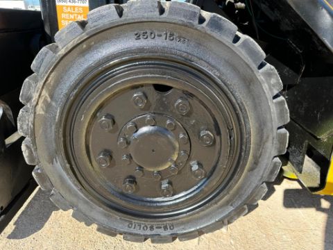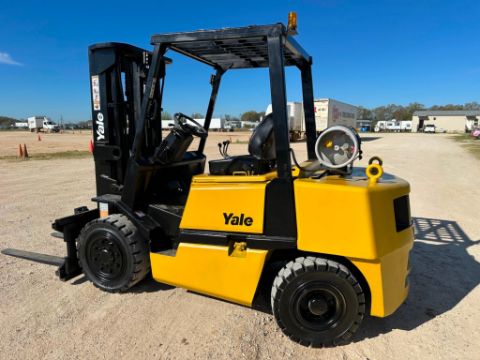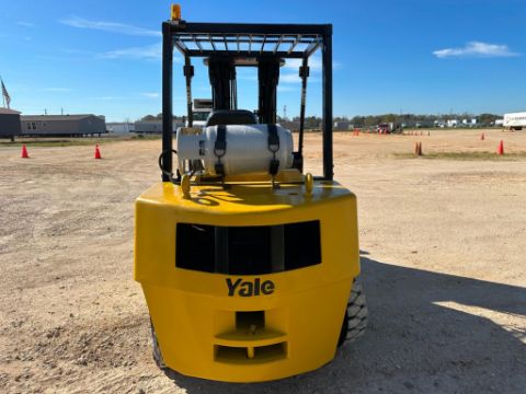 2014 Yale forklift with 8,500 lb lift capacity, 3-stage mast, and a max lift height of 189 inches. It features solid tires for indoor or outdoor use, a beacon light for added safety, and has 11,603 hours. Recently serviced with new seals and hydraulic lines, this forklift is dependable, well-maintained, and ready to work. Perfect for heavy-duty warehouse or yard operations.