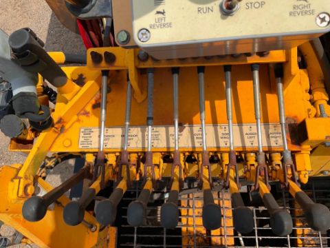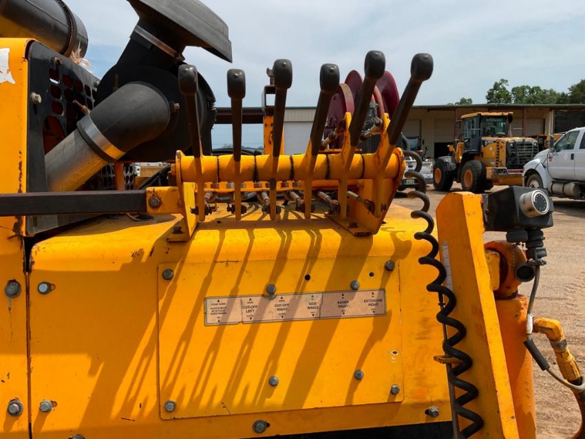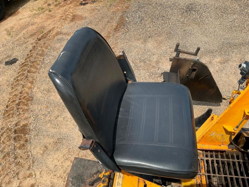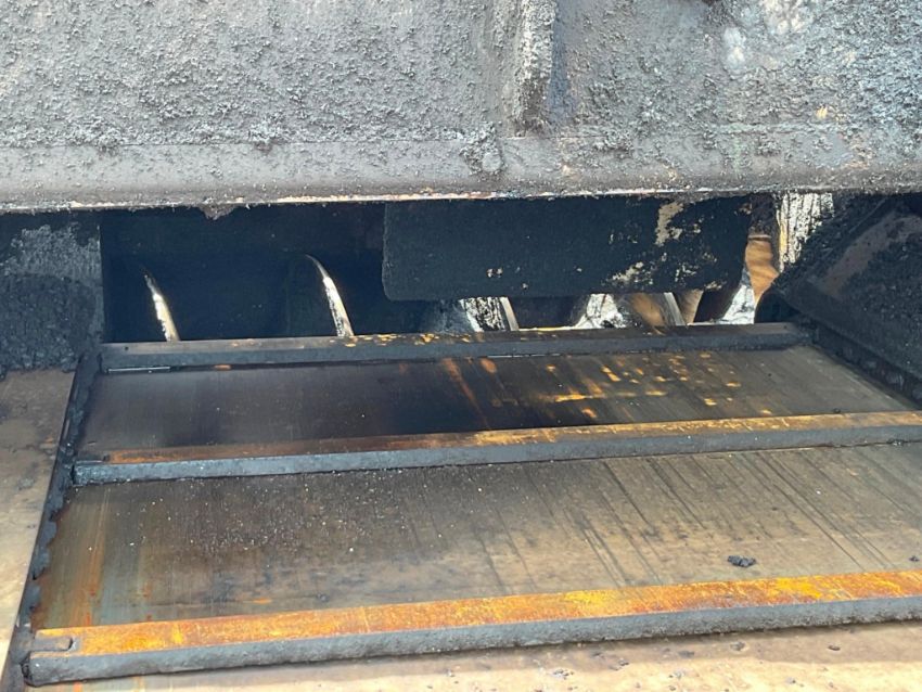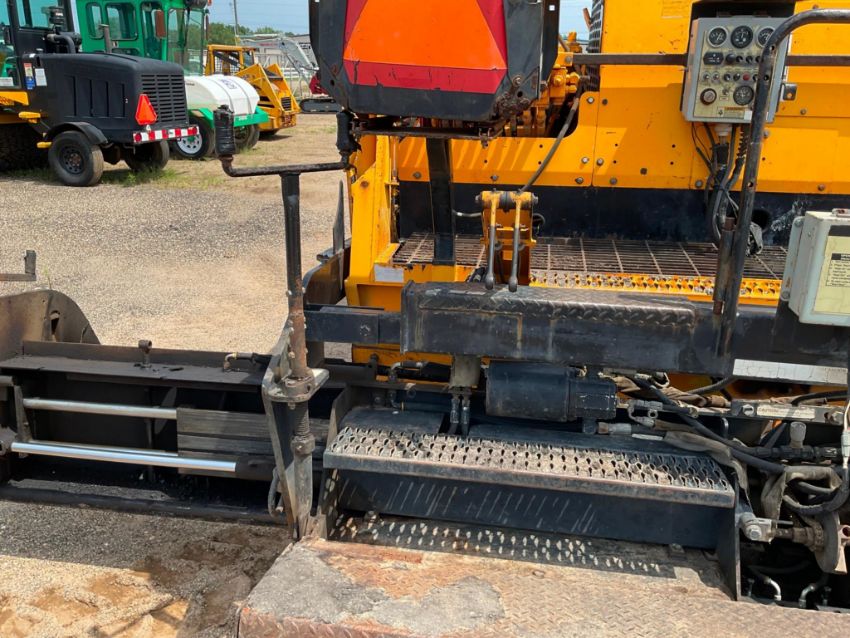The operator station has typical cosmetic wear, including fading and peeling stickers. A few control linkages felt slightly stiff, but all functions responded properly. Although track visibility was limited, the paver drove and maneuvered without issue.