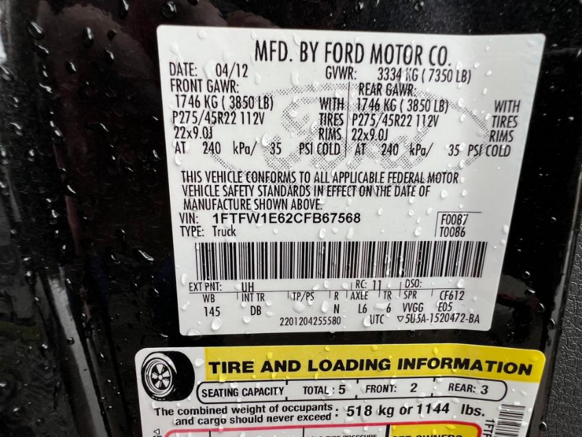 VIN: 1FTFW1E62CFB67568