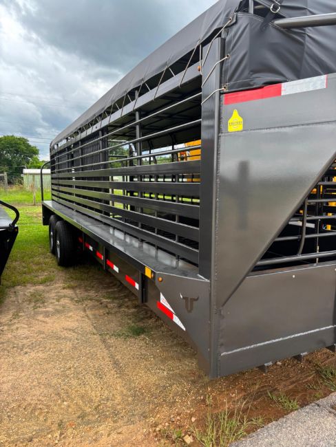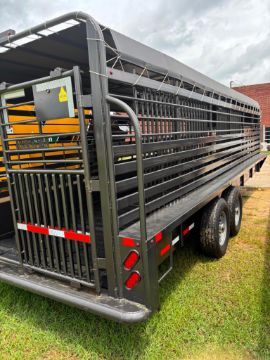 Built tough with a heavy-duty steel gooseneck frame, rub rails, stake pockets, and LED lighting for safe transport day or night. Tire size and tread depth appear serviceable upon inspection. Known for reliability in both ag and equipment transport, this unit is ideal for farmers, ranchers, or contractors looking for dependable hauling performance.
