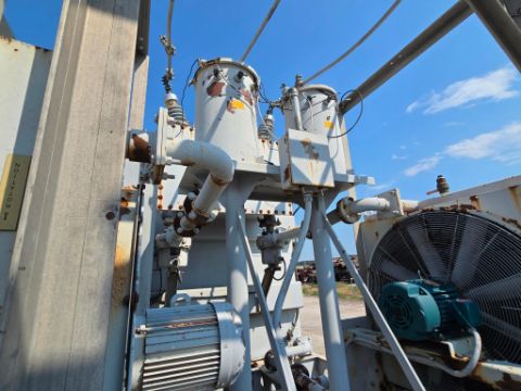 This three phase FOA class transformer is designed for 60 Hertz 46000 volts operation and comes mounted on a mobile trailer for easy transport and deployment. With rugged construction and precise engineering it ensures safe and efficient energy distribution in the field.
