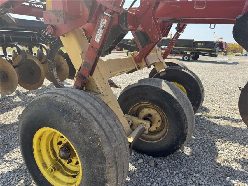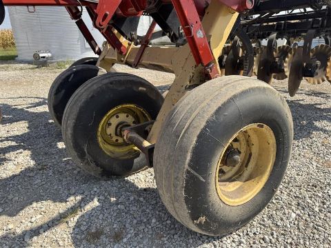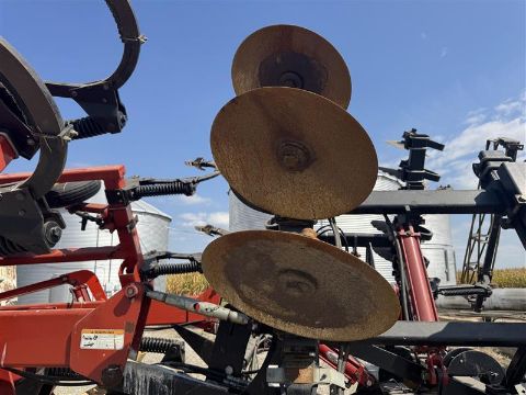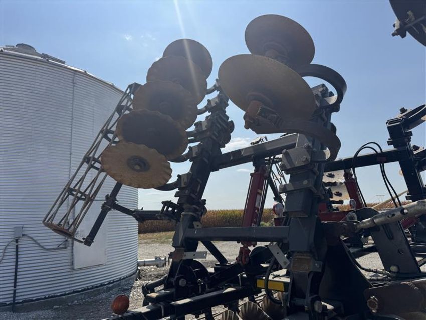 2007 Krause Dominator 4850: 18 ft combination ripper/disk with shanks, front disc blades, rear leveling discs, and rolling baskets. Features adjustable shank spacing, hydraulic depth control, and heavy-duty walking tandems for consistent ground contact. Equipped with good blades and points, strong main frame, and reliable hydraulics. Field-ready deep tillage tool built for high-residue conditions.