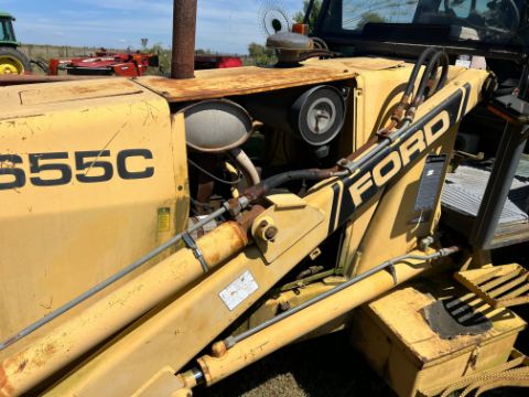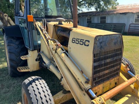 If you need a solid unit for your construction site, landscape inventory or just a overall solid utility backhoe on the farm, this unit should meet your needs. Ford 655C 2wd Backhoe; 21 inch rear bucket; cab enclosure but needs glass and air conditioner work; showing 5205 hours on the unit and seller stated the engine had been overhauled and has less than 500 hours on it; 4-N-1 front bucket but needs some welding work; solid unit mechanically.