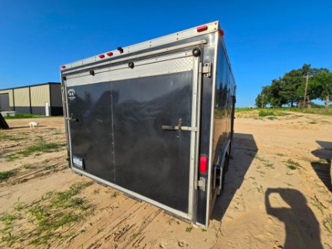Transport with ease in this Shadowmaster enclosed cargo trailer by J and L Cargo Express, measuring 101 inches wide by 12.5 feet long. Built tough for work or play, this trailer features a rear ramp door for hassle-free loading, a curbside walk-in door for quick access, and a secure 2IN ball hitch connection. Whether you're hauling tools, gear, or equipment, the Shadowmaster delivers reliable performance and spacious protection on every haul. A smart, road-ready solution for contractors, movers, and outdoor enthusiasts alike.