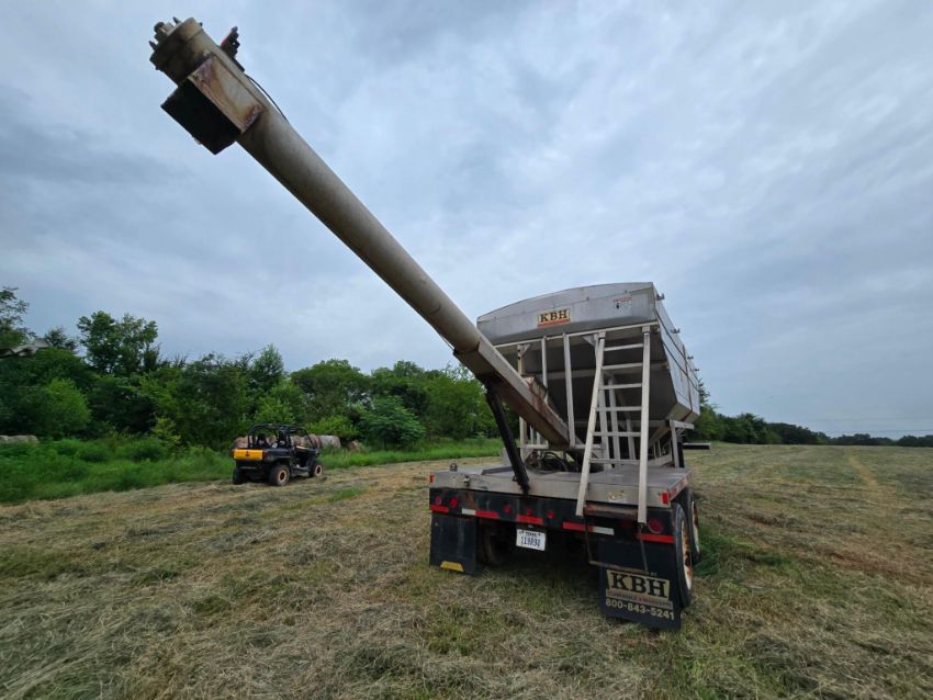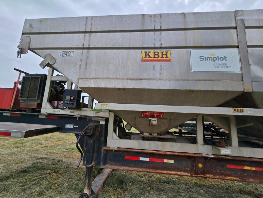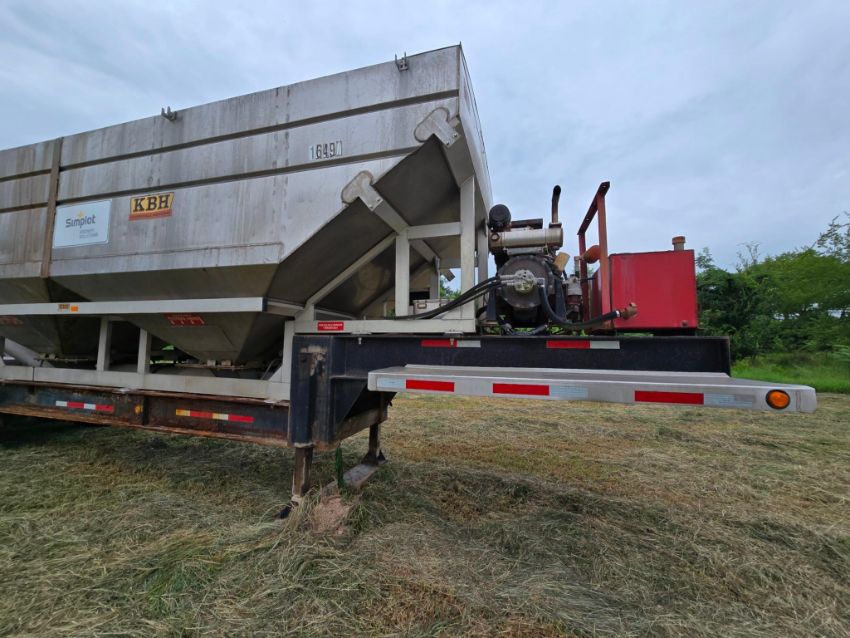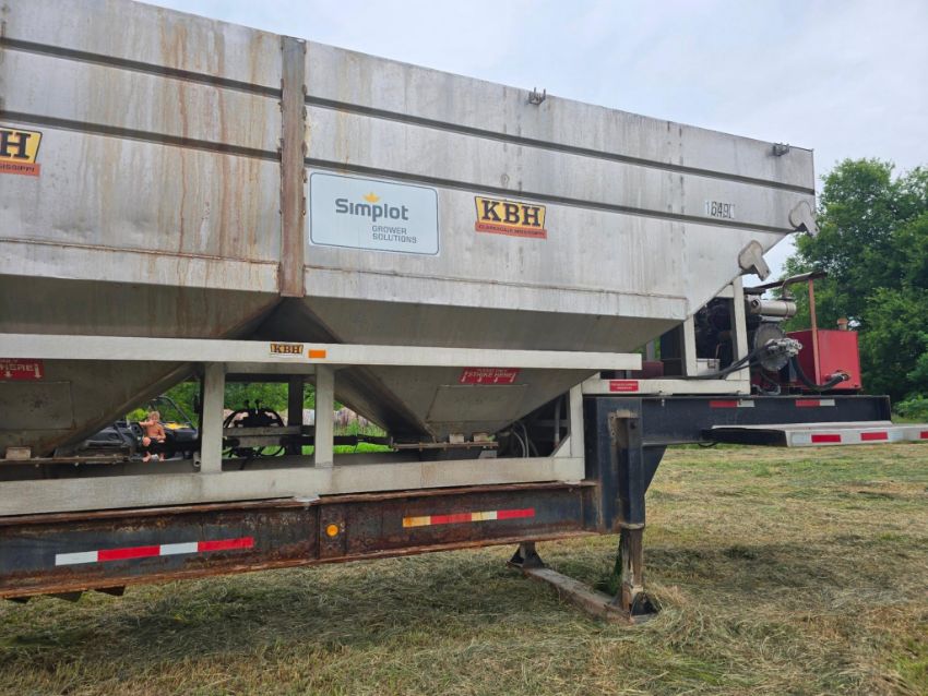 2016 KBH Fertilizer Tender Trailer built for efficiency and durability. This high-performance unit features an aluminum subframe and a self-contained hydraulic system powered by an Isuzu diesel engine. Designed with two stainless steel compartments, stainless steel augers, rear discharge, hydraulic doors, and clean-out doors for easy operation. Additional highlights include hopper vibrators, front and rear stainless steel fenders, rear entry ladder, and product clean-out ports. A top choice for agricultural and commercial fertilizer applications, offering reliable performance season after season.