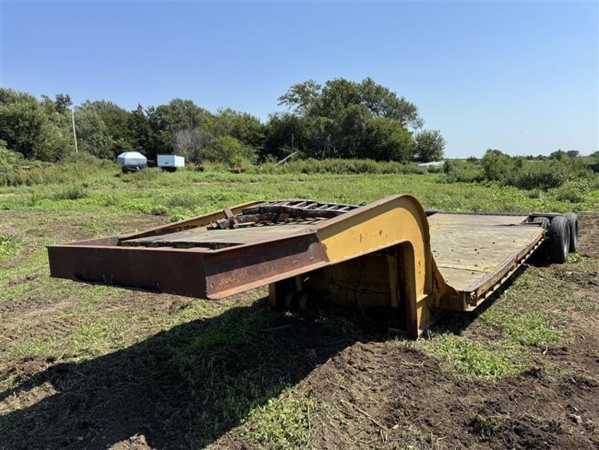 30ft overall length, 8.25ft wide, 21ft deck length. Newly greased floating tandems, new tires and wheels. Front has been modified to hook to a semi truck with 5th wheel. Unknown year (1960s)