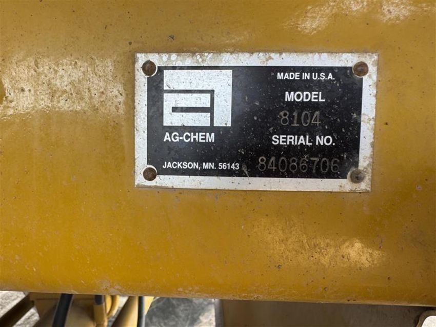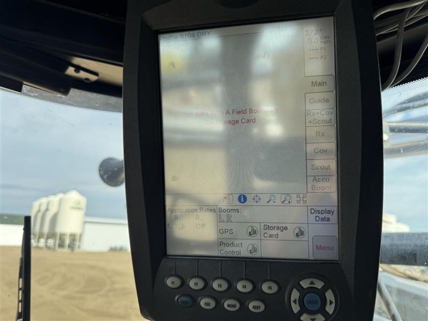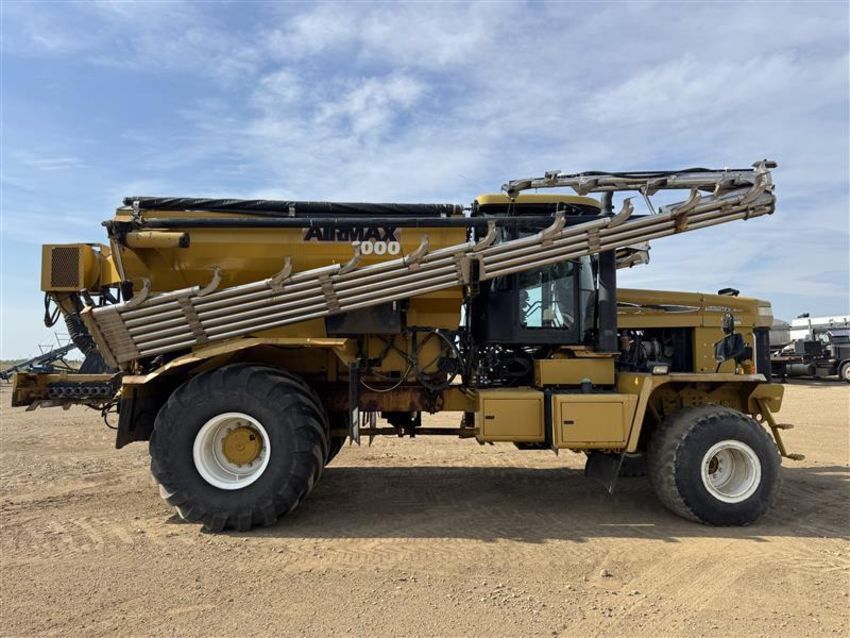 2006 TerraGator 8104. Airmax 1000 box. 4639 Hours. Powered by a CAT C9 diesel engine and equipped with 100-foot booms. Features a dry fertilizer spreader system with air delivery and high-capacity product tanks, built on a four-wheel flotation chassis for large-scale application with reduced soil compaction.