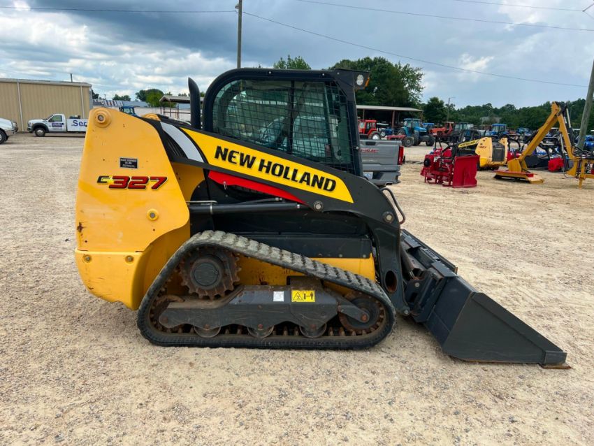 2021 New Holland C327 Compact Track Loader; Track Skid Steer Loader with Open ROPS; E-H Open Cab LCD Display; Lap Bar: Standard Flow Hydraulics; HD Rear Door; 2-Speed E-H Controls- Block Heater; Front Electric Multi-Function Controls; 12.6 inch Track; Vinyl Suspension Seat; 76 inch Low Profile Bucket; Lift Capacity 2700 Lbs; Tipping Load 5400 Lbs.