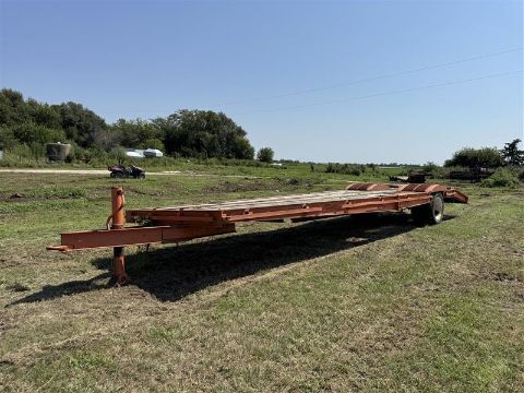 33ft Dovetail Flatbed Trailer. 32ft 10in total length, 8ft wide, 28ft flat deck, 4ft dovetail. Heavy duty built, pintle hitch. Ramps, Single axle. Unknown make/model.