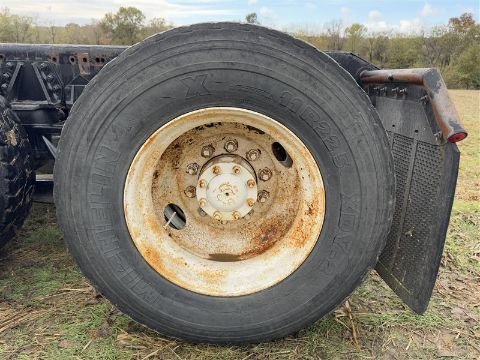 Description: 1992 Ford L9000 Cab and Chassis showing 160,123 miles. Powered by a Cummins L10 diesel engine rated at 300 HP, paired with a 15-speed Eaton Fuller transmission. Features include a 248-inch wheelbase, air brakes, tandem rear axles, and full air suspension. Steel wheels. Cab is clean with all gauges working. Runs and drives well - ready for body installation or custom setup.