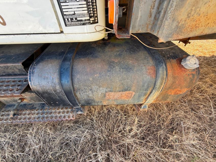 1997 international 4900 DT466E flat bed. 6 mounted tie downs down bed rail, has good tires, forklift mount on rear, bed is 24x8, 257110 miles. batteries were dead at time of inspection.