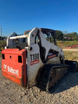 This 2008 Bobcat T190 features an open ROPS operator station and is powered by a diesel engine. The meter reads 3410 hours. Machine starts, runs, and operates as expected. Selling with bucket.