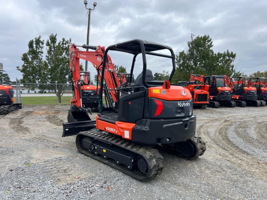 The Kubota KX057-5 gives you the best in durability, comfort and performance. Rated at 47.6 horsepower, the compact excavator is built to help you dig deeper, lift higher and dominate whatever task you throw its way. Lets get to work with this New 2023 Kubota KX057-5 Compact Excavator with Angle Blade and hydraulic thumb.