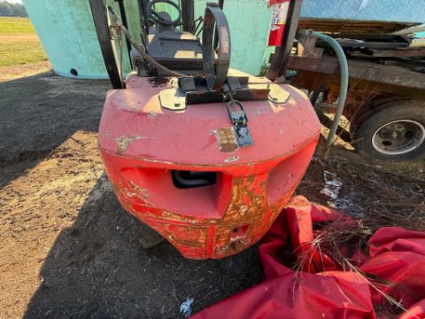 The machine is not running at the time of listing and is being sold without a battery or forks, making it a great candidate for a rebuild or component use. Overall frame and mast are intact, and the hydraulic setup offers strong potential once powered up again.