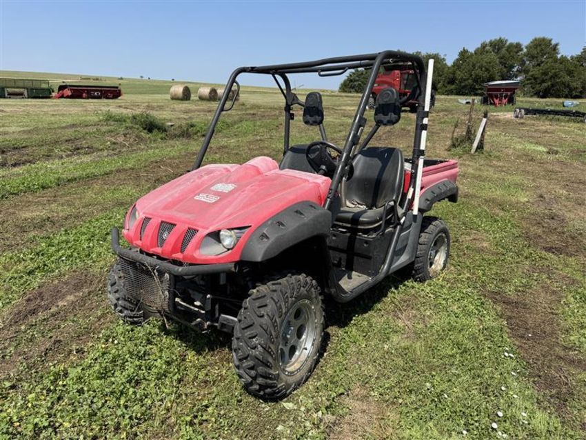 2007 Yamaha Rhino 660 660cc liquid-cooled 4-stroke engine. Automatic transmission with high/low/reverse. 4x4 with differential lock. Independent suspension. Dump bed with tailgate. ROPS cage. Seating for two. Non-Running Unit. Needs head gasket.
