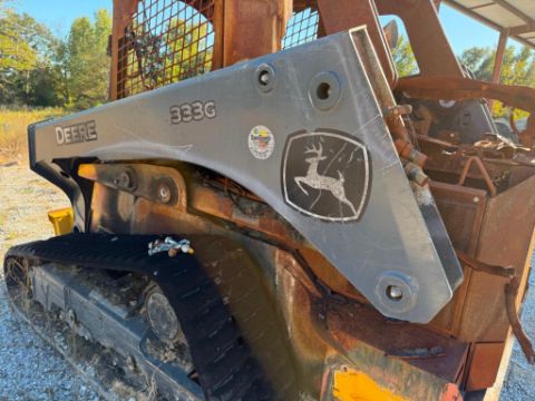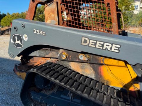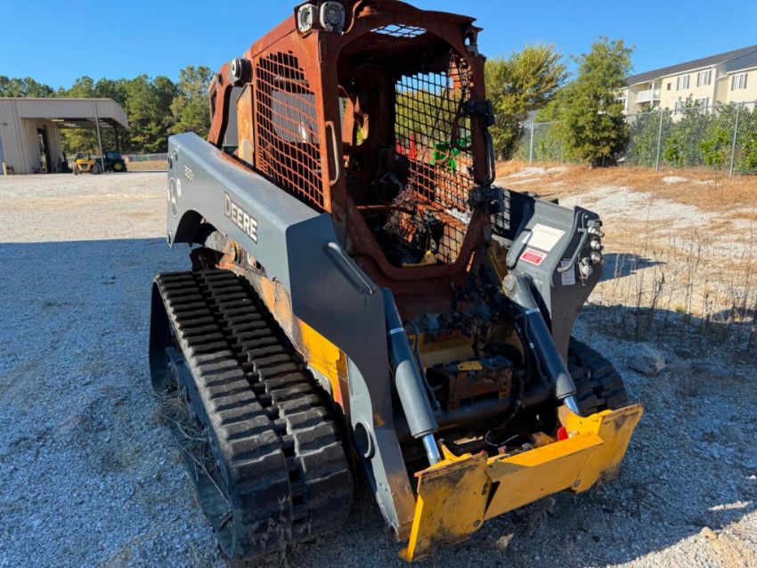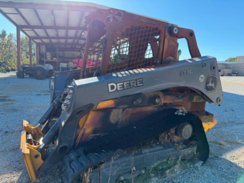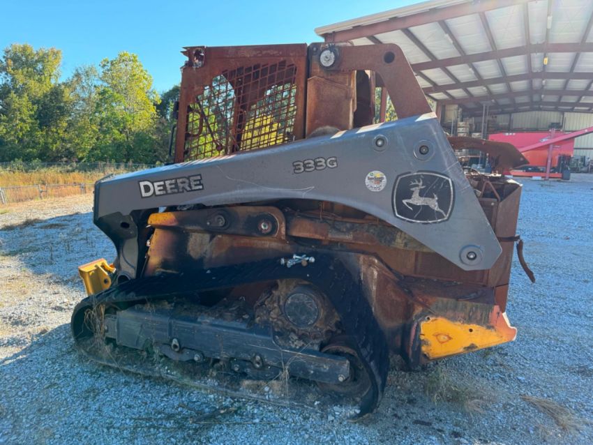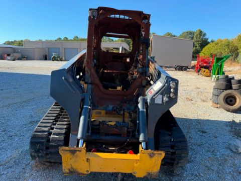 2023 John Deere 333G Compact Track Loader being sold for parts only. The loader frames and carrier are intact, and the machine still carries a significant amount of value in usable components. Equipped with a power quick-tach, and both sprockets and undercarriage appear to be in good condition.